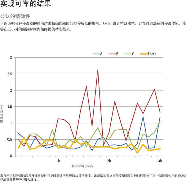 Tacta設(shè)計精益求精,旨在打造舒適的移液體驗,能夠在三小時的測試時間內(nèi)始終提供精準(zhǔn)結(jié)果