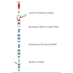 For very fast and efficient isolation of genomic DNA from small amounts of different types of forensic samples like hairs or hair roots, stains of blood, saliva or sperm, finger nails, cigarette butts, bubble gum, buccal swabs, stamps and envelopes as well as fingerprints on different surfaces. The kit is a very efficient tool for isolation of DNA for applications where only limited amounts of starting material and very dirty material is available. Further, the new kind of extraction chemistry allows particularly the recovery of degraded DNA. |