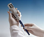 小心地旋松吸筒活塞,并從電子移液器上卸下。