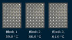 To find the optimal annealing temperature of new primers pairs the Biometra TRIO Thermocycler offers the Temperature Optimisation Step function. Temperature Optimisation Steps, by making use of the three blocks, provide different annealing temperatures in a gradient-like fashion. In the corresponding screen just enter an annealing temperature for the block in the middle and an increment, defining the temperature difference for the first and third block. For maximum ease of use programs with Temperature Optimisation Steps automatically start on all three blocks, there is no need to start and stop the blocks individually.