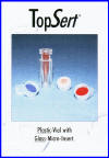 微量插入瓶(即內(nèi)插管)相對于微量樣品瓶來說,其不能自我密封,沒有瓶頸需要和其他樣品瓶共同使用,其直徑選擇取決于所采用的樣品瓶。微量插入瓶的主要作用是降低體積,使取樣針能夠取到樣品,即使對很少的樣品,其頂部越長其降低的體積越多。