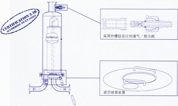 賽多利斯設(shè)計的濾芯縮緊裝置為現(xiàn)有方法中最好的一種形式,確保濾芯縮緊的同時,還為濾芯高溫滅菌消毒時的體積膨脹留出足夠的空間,最小的邊界區(qū)使清洗更加方便。 |