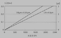 水,室溫下對10"標(biāo)準(zhǔn)濾芯測得的流量-壓差曲線 |