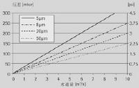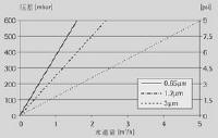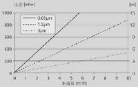 水,在室溫下對(duì)10"標(biāo)準(zhǔn)濾芯測(cè)得的流量-壓差曲線 |