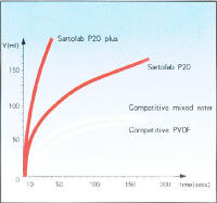 這兩種濾器過(guò)濾面積大,并且在濾器上端設(shè)計(jì)有8個(gè)帶PTFE的排氣孔,在過(guò)濾過(guò)程中有自動(dòng)排氣功能,避免產(chǎn)生氣阻,因此過(guò)濾速度非?臁artolab-P20/Satolab-P20plus過(guò)濾器更加裝了玻璃纖維預(yù)過(guò)濾膜,既能過(guò)濾粘稠的難過(guò)濾的液體,也能保證理想的高流速。