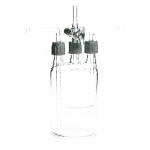 緩沖瓶(Woulff's Bottle,500ml)用在抽濾瓶(濾過(guò)液接收瓶)和真空泵之間,在抽濾系統(tǒng)中:帶有開(kāi)關(guān),可控制真空度;當(dāng)有液體從抽濾瓶中溢出時(shí),能及時(shí)發(fā)現(xiàn),并可關(guān)閉開(kāi)關(guān),以保護(hù)真空泵。