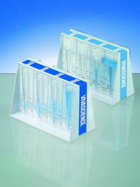 Vivapore Q5和Q10是新推出的溶劑吸附型濃縮器,可以同時濃縮8個樣品。溶劑吸附法不需要任何附加設(shè)備,只需把待濃縮的樣品加入濃縮器中,靜置,等達(dá)到需要的濃縮倍數(shù)后,用吸管回收即可。溶劑吸附法用于常規(guī)目的實(shí)驗室濃縮或進(jìn)一步分析前的樣品純化,尤其適用于在剪切力或壓力誘導(dǎo)下易變性的不穩(wěn)定樣品溶液,以及需要在低溫環(huán)境下操作的溶液。通常濃縮100倍需65-100分鐘,死端結(jié)構(gòu)設(shè)計使樣品不會因過度濃縮而變干。