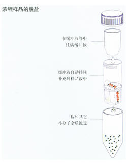 樣品濃縮后,在緩沖液管中注入緩沖液,經(jīng)一次離心即可達(dá)到98%的脫鹽率。