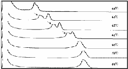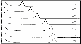 此時,以將兩種DNA結(jié)構(gòu)部分熱溶解的溫度進(jìn)行分析,實(shí)現(xiàn)最佳分離,下左圖表示變異型結(jié)合體(280bp)分析結(jié)果,柱溫從61度到63度分析,并檢出變異型螺旋體和原型螺旋體(如左圖中箭頭所示)。另一方面,原型結(jié)合體沒有形成變異型螺旋體,即使溫度由61度變?yōu)?3度,也只能檢測出一個峰。