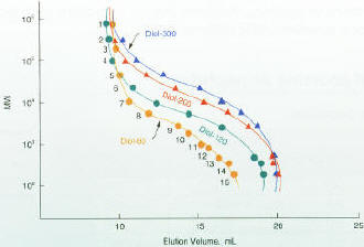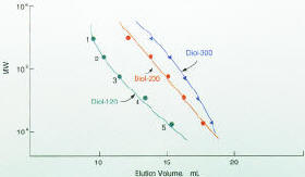 對于分離和測定天然糖和水溶性大分子量化合物,可以分別單獨(dú)采用Diol-60,Diol-120,Diol-200或Diol-300型的色譜柱,也可采用不同的分子量范圍組合來進(jìn)行。