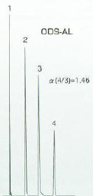 在YMC-Pack ODS-AL和ODS-AM對內(nèi)標物對羥基苯甲酸甲酯/2,6-二甲基吡啶的分離因子(α)是不同,這是由于殘留的硅醇基作用,在ODS-AL顯示出相對更長的保留時間。
