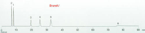 堿性化合物阿米替林在其它產(chǎn)品(Brand Ⅳ和Brand Ⅴ)上,色譜峰會產(chǎn)生拖尾;而在Hydrosphere C18和Pro C18色譜柱上,即可獲得良好的色譜分離;盡管阿米替林在Hydrosphere C18和Pro C18色譜柱上的保留時間相近,但是在這兩種色譜柱上的最大不同是n-丁苯和阿米替林的分辨率不同,這是由于Hydrosphere C18填料表面的疏水性所致。